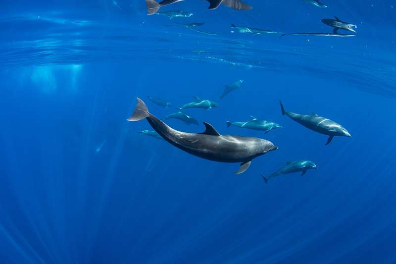 norkel con rayas mobula, delfines, orcas y posiblemente ballenas (avistamientos no garantizados)